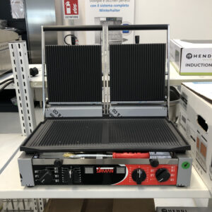 – Due termostati regolabili fino a 300 °C permettono di gestire separatamente le due metà della piastra.
