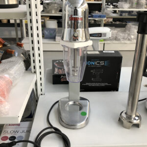 – versione con 3 fruste in alluminio e acciaio per la preparazione di cocktail e sorbetti o con disco appositamente studiato per il caffè shakerato o per montare il prodotto in lavorazione;