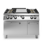Cucina tuttapiastra gas con 4 fuochi su forno gas statico e vano con porta Cod. R90/120TPPFGF/P