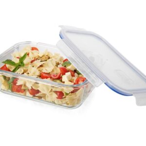 CONTENITORE FRIGO+COPERCHIO CON VALVOLA VETRO PP 1040ML EVA: Contenitore in vetro con coperchio ermetico; guarnizione in silicone, con valvola di sfiato per l’utilizzo nel microonde; il sistema di chiusura con 4 clips e la guarnizione di silicone garantiscono la tenuta ermetica sia per l’aria che per i liquidi; temperature di utilizzo: da -20°C a + 400°C (contenitore in vetro); da -20°C a + 120°C (coperchio); limite di resistenza della parte in vetro allo shock termico: 120°C; utlizzabile in freezer, frigorifero, microonde (con valvola di sfiato aperta), forno (senza coperchio); sovrapponibili; lavabile in lavastoviglie; BPA-Free; materiali: contenitore in vetro borosilicato, coperchio in PP con guarnizione in silicone; misure: 21 x 15,8 x 7.0 cm capienza: 1.040 ml